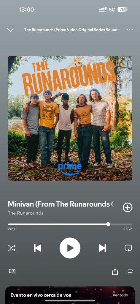 Estoy viendo una serie que se llama The Runarounds. No paro de pensar en cómo me hubiese gustado tener una banda. Las series tienen algo aspiracional cuando las veo. Silicon Valley, We Crashed, Scandal. Obvio que esperaría que con mucho menos drama. Hay algo. Si vieron Daisy Jones and The Six y les gustan las cosas un poco más teen, mirenla. Es de los que hicieron Outer Banks también. Tiene buenos temas. Es música estilo The Kooks.